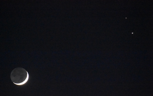 月齢2.7の三日月、右上が土星、その下の星が木星です。