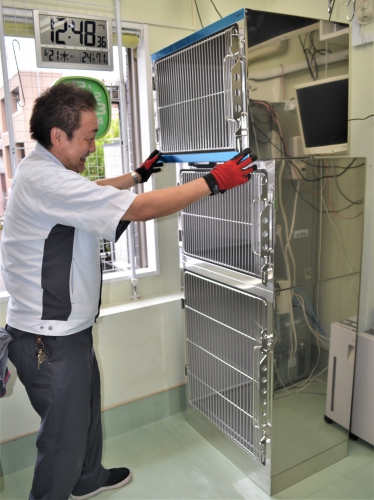 「猫用入院室」に新たに3室のケージを導入し、現在、稼働中の6室に加えて9室に増床いたしました。