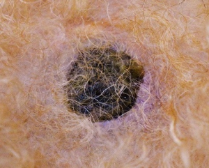 下の2枚の写真が皮膚良性メラノーマの典型的な形状を示すものです。