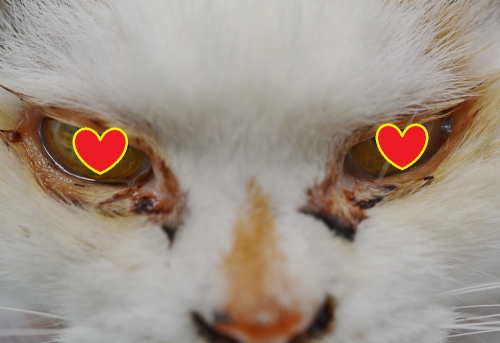 眼瞼内反の原因は発育異常や、眼瞼内反を誘発しやすい構造を持つ猫、何らかの目の病気に続いて起こるものなど様々です。眼瞼内反をおこしやすい猫腫としてペルシャが代表的ですが、その交配種であるヒマラヤン、それらの雑種でも発生頻度は高いと考えられます。もちろん雑種日本猫にも時折みられるものです。