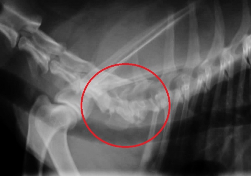上記の薬剤の組み合わせによる薬物治療で痛みの軽減が見られない、または不充分である場合には関節内への薬物療法を行います。動物での関節内投与の煩雑さは上で述べた通りですが、それにも増して症状のコントロールが難しい場合には全身麻酔鎮静下での正確なレントゲン検査関節液検査細胞診、細菌培養等)と同時に関節内への薬物投与を行うことがあります。