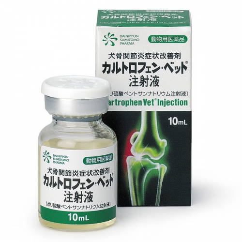 動物医療では関節内への薬剤投与を行うために鎮静ないし麻酔を実施する必要があり、人で行われているような薬物療法を選ぶことが長らくできませんでした。このような状況を解消するために開発された画期的な薬剤が多硫酸ペントサンナトリウムです。(商品名カルトロフェン・ベット、DSファーマアニマルヘルス)