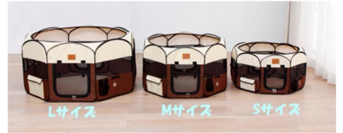メッシュ素材の折りたたみ式サークルです。円形になっているので、ワンちゃんが歩きたいときは歩くことができ、挟まる心配がありません。 持ち運びも楽です。